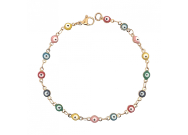 Γυναικείο βραχιόλι από ατσάλι σε χρυσό χρώμα με χρωματιστά μάτια.