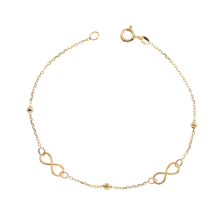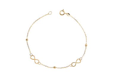 Γυναικείο βραχιόλι από χρυσό 14 καρατίων δεμένο με το σχέδιο άπειρο κρι χρυσές μπιλίτσες.