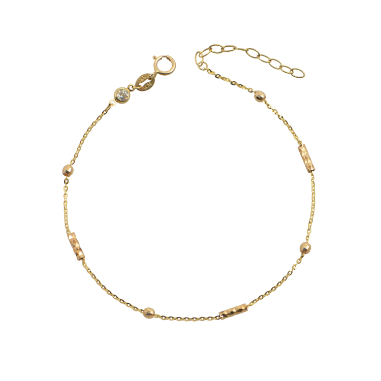 Γυναικείο βραχιόλι από χρυσό 14 καρατίων δεμένο με διαμανταρισμένες πέτρες σε δυο σχέδια.