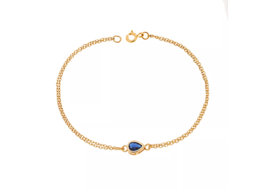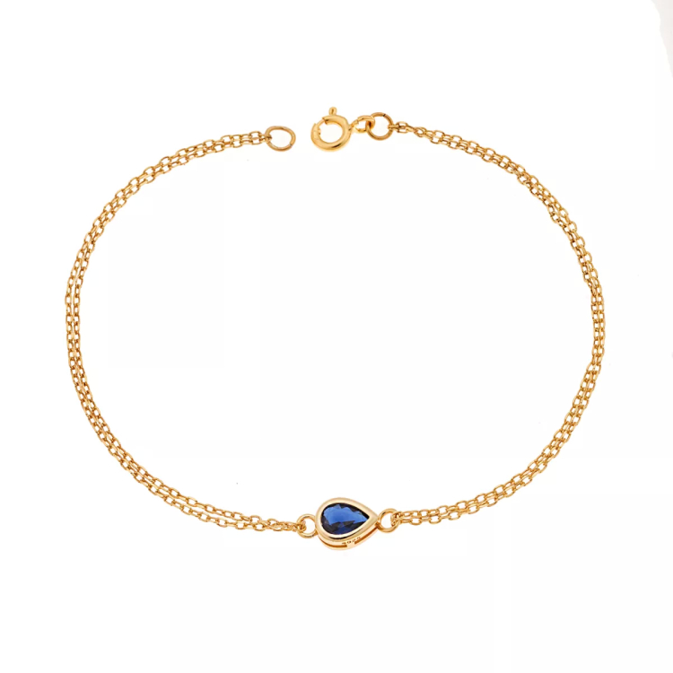 Βραχιόλι από ασήμι 925 δεμένο με διπλή αλυσίδα και στο κέντρο του δάκρυ με μπλε πέτρα ζιργκόν. Διαθέτει επέκταση.