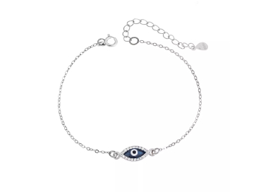 Βραχιόλι από ασήμι 925 δεμένο με αλυσίδα και στο κέντρο του μάτάκι με μπλε σμάλτο και διάφανες πέτρες ζιργκόν.