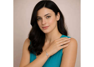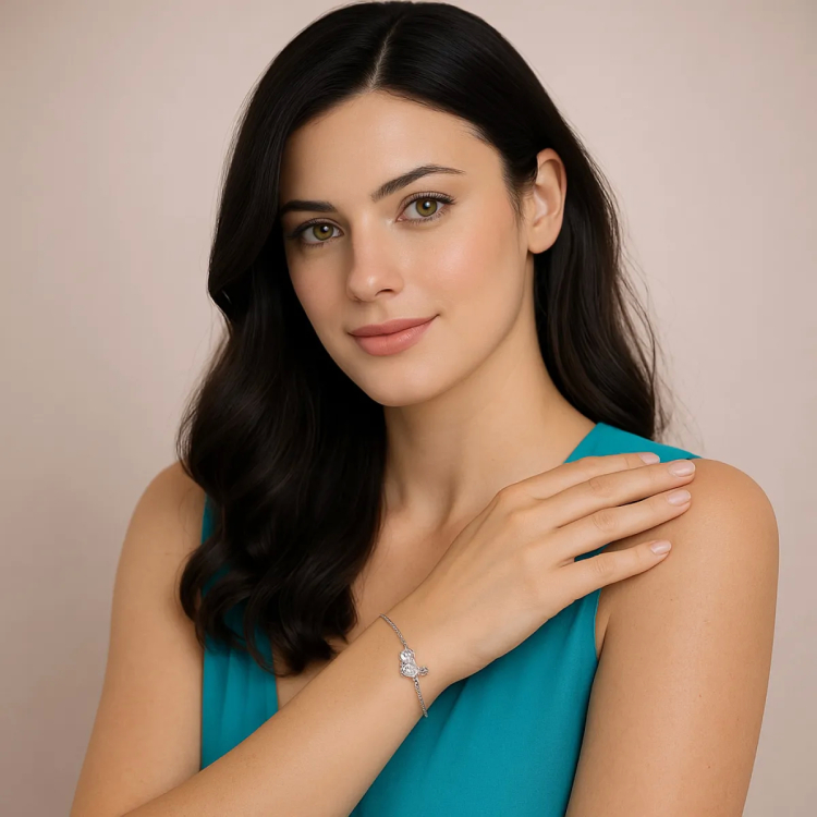 Γυναικείο βραχιόλι από ασήμι 925 δεμένο με αλυσίδα και καρδούλα με μονόπετρο δαχτυλίδι 1 cm με διάφανες πέτρες ζιργκόν περιμετρικά και στο δαχτυλίδι.