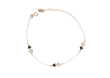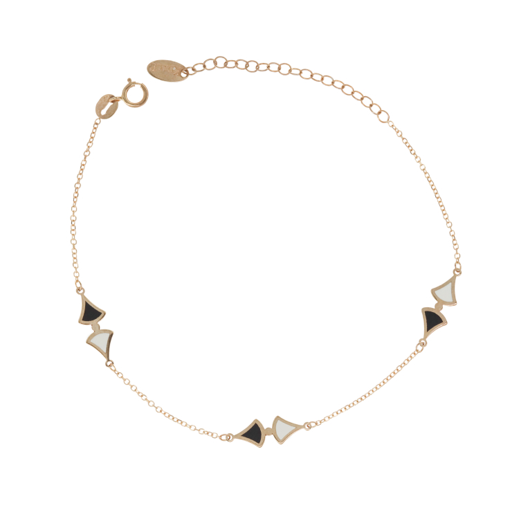 Γυναικείο βραχιόλι από χρυσό 14 καρατίων με πρωτότυπο σχέδιο σε λευκό και μαύρο χρώμα.