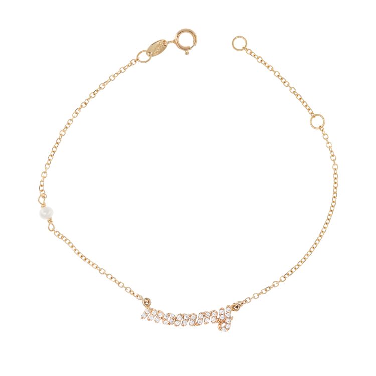 Γυναικείο βραχιόλι από χρυσό 14 καρατίων μαμά με μαργαριτάρι.