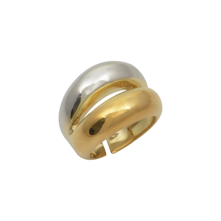 Δίβερο δαχτυλίδι από καθαρό ασήμι 925 με διχρωμία. Η μία πλευρά επιχρυσωμένη από χρυσό 24 καρατίων και η άλλη με επιπλατίνωμα.