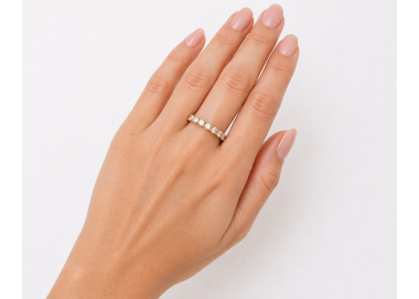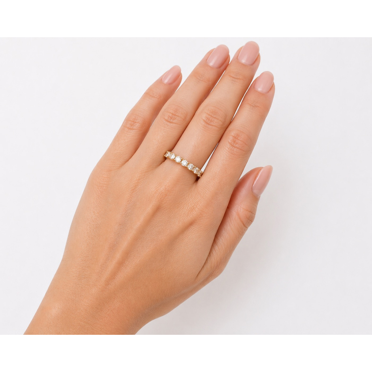 Γυναικείο μισόβερο δαχτυλίδι από χρυσό 9 καρατίων, διακοσμημένο με 9 διάφανες πέτρες ζιργκόν 3mm η κάθε μια.