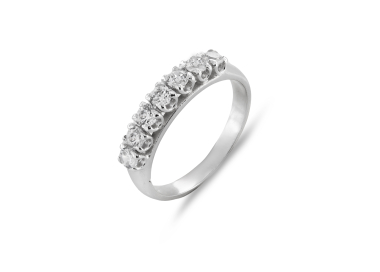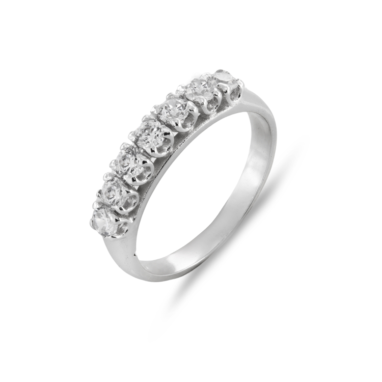 Γυναικείο δαχτυλίδι από λευκό χρυσο 14 καρατίων, διακοσμημένο με 7 λευκές πέτρες ζιργκόν 3mm η κάθε μια.