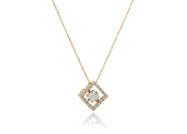Γυναικείο κολιέ από χρυσό 14 καρατίων σε σχήμα ρόμβου, μονόπετρο στο κέντρο του και δεμένο με ζιργκόν περιμετρικά.