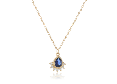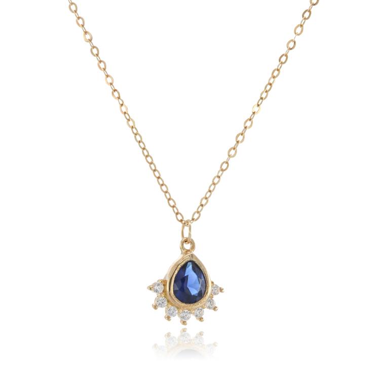 Γυναικείο κολιέ από χρυσό 9 καρατίων δεμένο με πέτρες ζιργκόν σε χρώμα βαθύ μπλε και λευκό