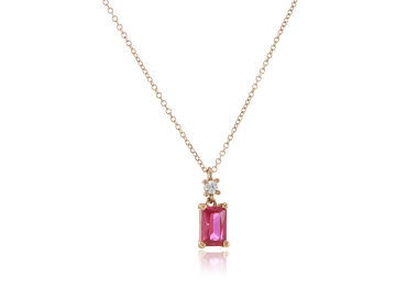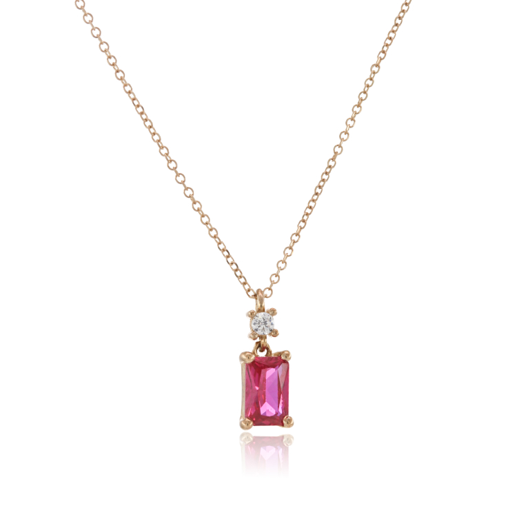 Γυναικείο κολιέ από χρυσό 9 καρατίων με ροζ πέτρα ζιργκόν και μια μικρότερη σε λευκό χρώμα.