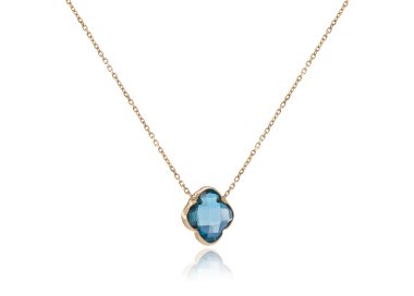 Γυναικείο κολιέ από χρυσό 14 καρατίων με σταυρό και μπλε πέτρα.