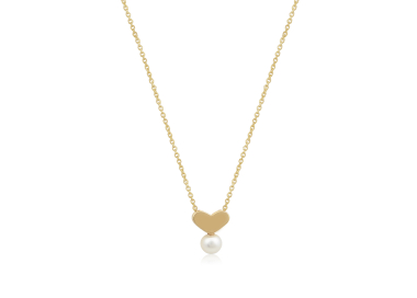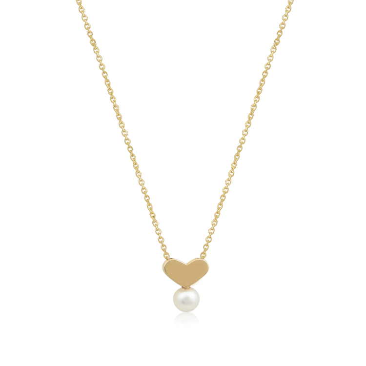 Κολιέ από χρυσό 9 καρατίων με σχέδιο καρδούλα δεμένη με μαργαριτάρι.