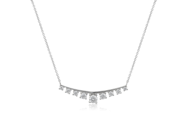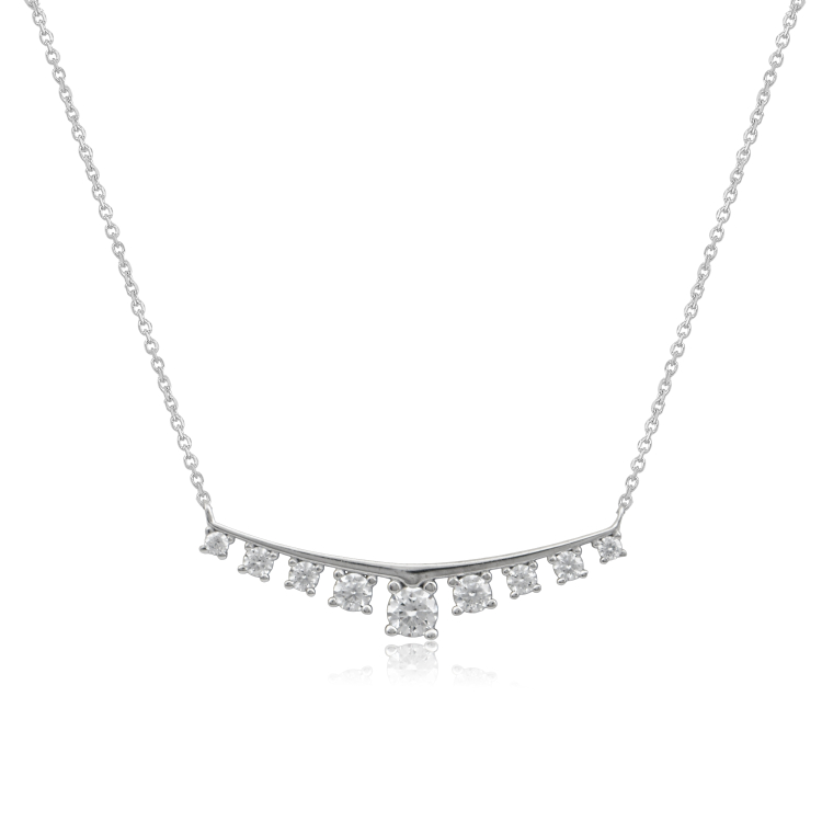 Γυναικείο κολιέ από λευκό χρυσό 14 καρατίων δεμένο με διάφανες πέτρες ζιργκόν σε ιδιαίτερο σχήμα που στέκεται πολύ όμορφο στον λαιμό.