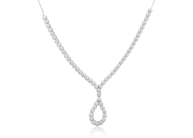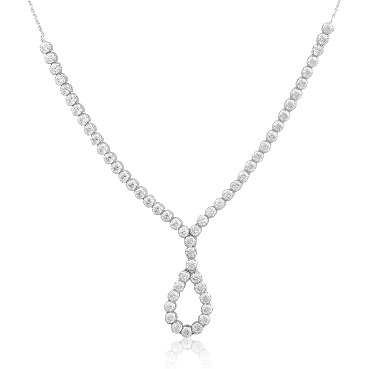 Γυναικείο κολιέ από λευκό χρυσό 9 καρατίων δεμένο με διάφανες πέτρες ζιργκόν σε σχήμα γραβάτας.