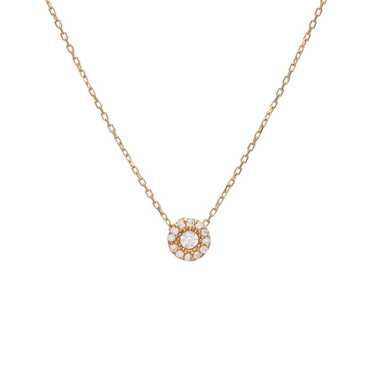Χρυσό κολιέ ροζέτα με πράσινη πέτρα και περιμετρικά ζιργκόν