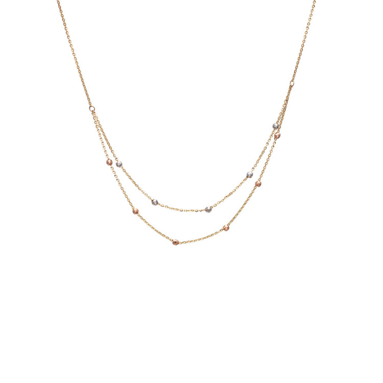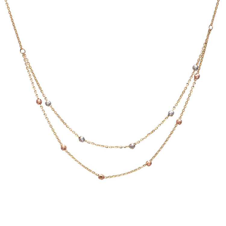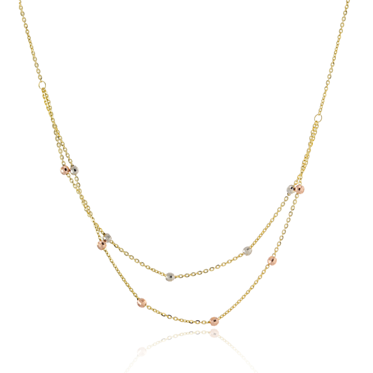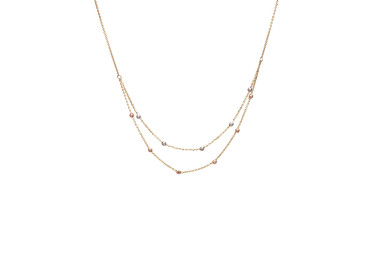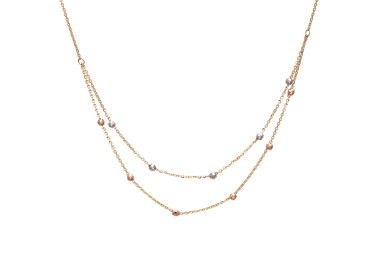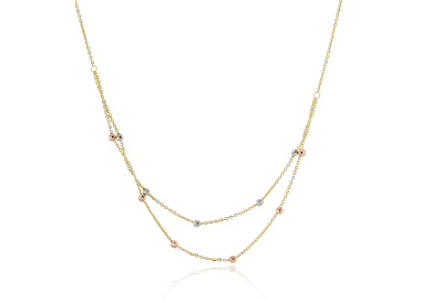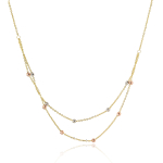 Γυναικείο διπλό κολιέ από χρυσό 14 καρατίων με διαμανταρισμένες πέτρες σε λευκό και ροζ χρώμα