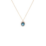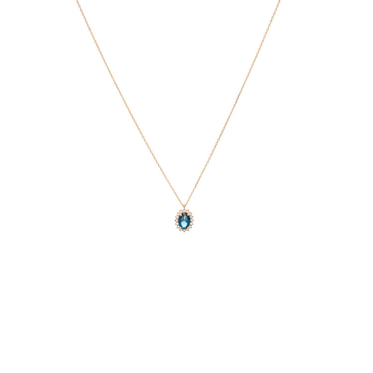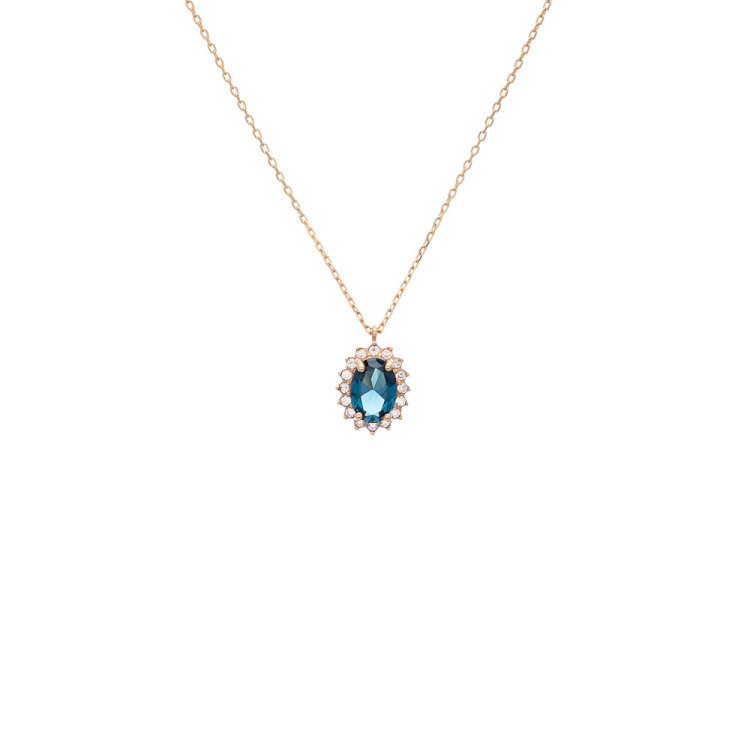 Γυναικείο κολιέ ροζέτα από χρυσό 14 καρατίων με μπλε πέτρα και ζιργκόν.