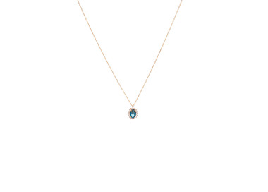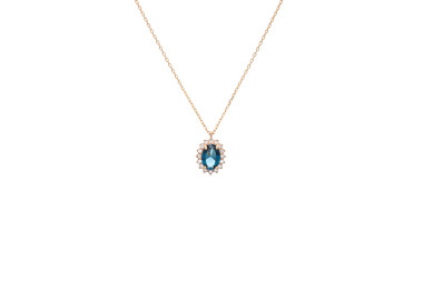 Κολιέ ροζέτα με μπλε πέτρα.