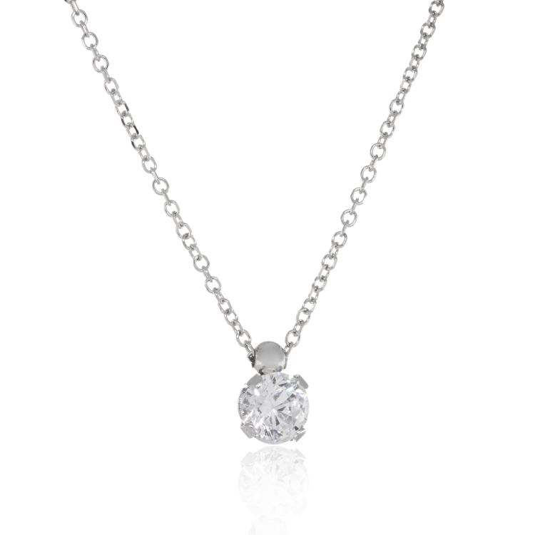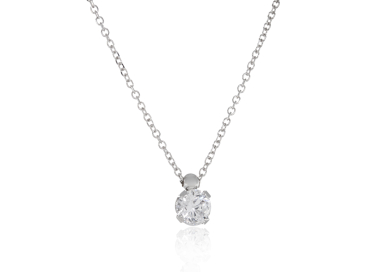 Γυναικείο κολιέ από λευκό χρυσό 9 καρατίων μονόπετρο δεμένο με ζιργκόν. Μπορεί να κατασκευαστεί και σε 14 καράτια.