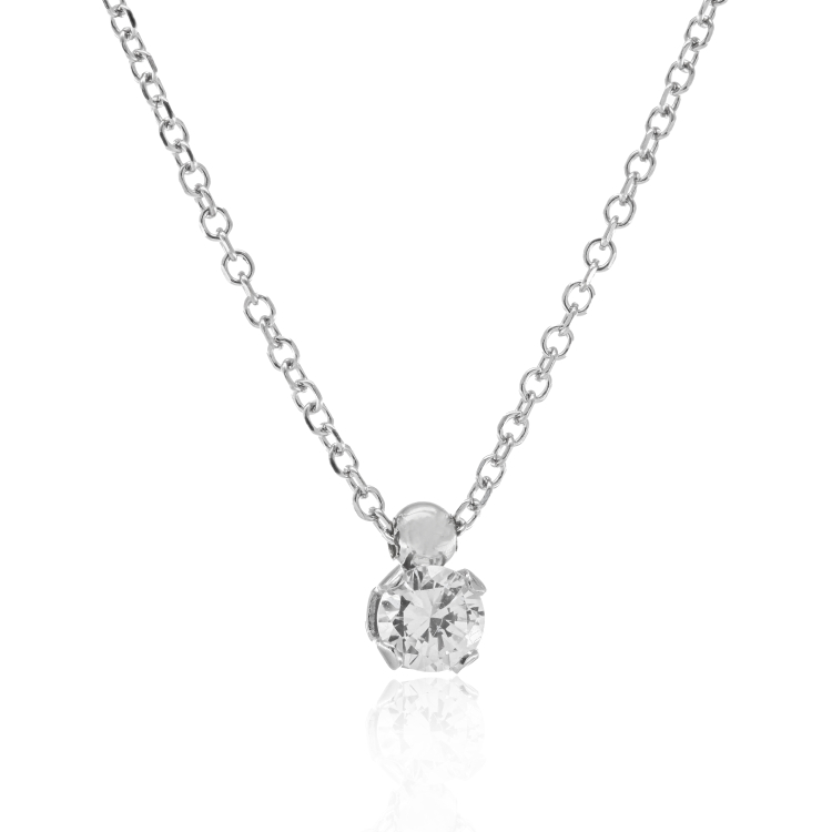 Γυναικείο κολιέ από λευκό χρυσό 9 καρατίων μονόπετρο δεμένο με ζιργκόν.