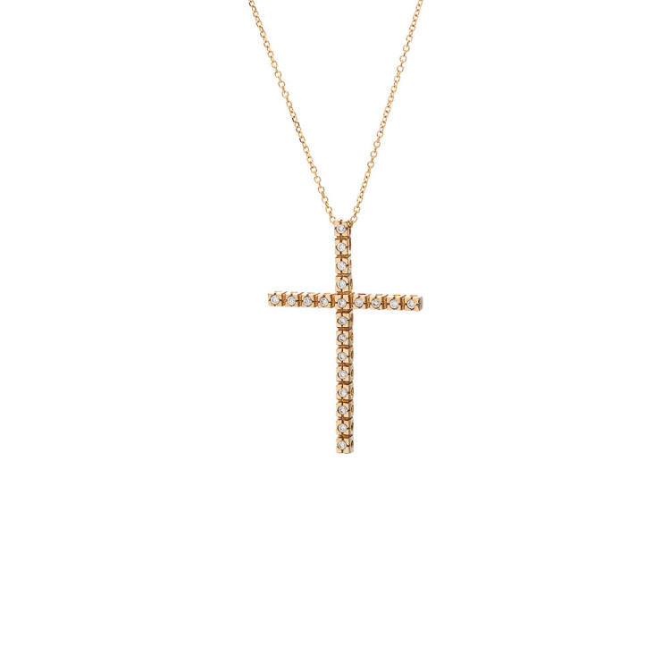 Σταυρός γυναικείος μαζί με τριπλή αλυσίδα , δυο χρυσές και μια λευκόχρυση Μία υπέροχη επιλογή για βάπτιση κοριτσιού αλλά και για γυναίκα.