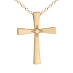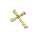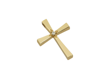 Γυναικείος σταυρός βάπτισης από χρυσό 14 καρατίων σε λιτή γραμμή με ζιργκόν στο κέντρο του.