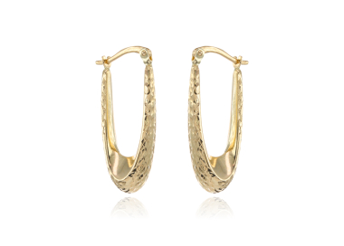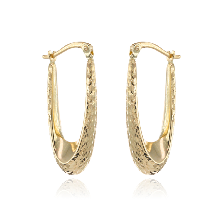 Γυναικεία σκουλαρίκια από χρυσό 14 καρατίων , σφυρηλατημένο σε όλη τους την επιφάνεια .