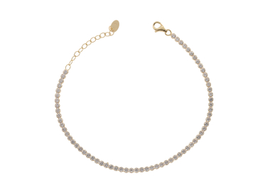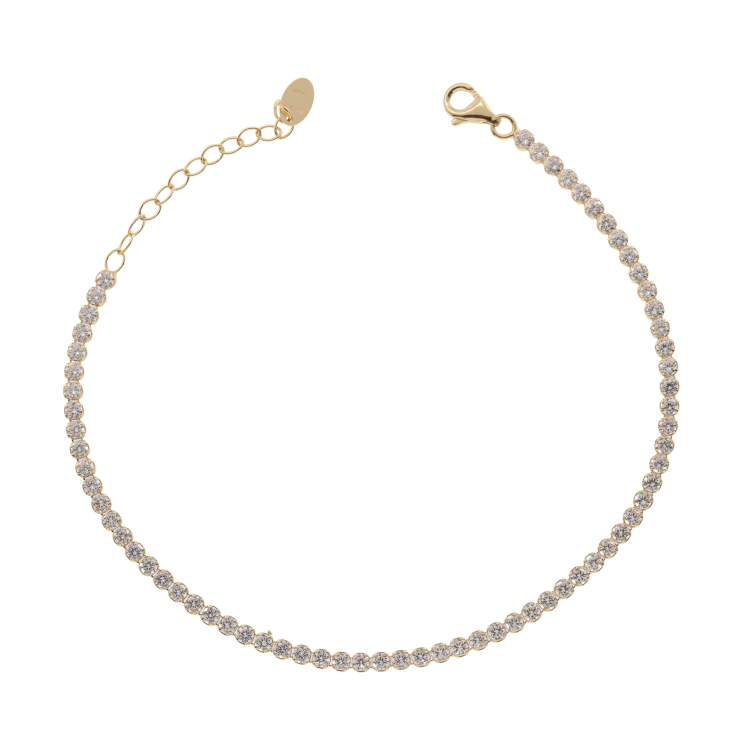 Χρυσή ριβιέρα χεριού με ζιργκόν πέτρες, κατασκευασμένη από χρυσό 9 καρατίων.