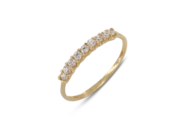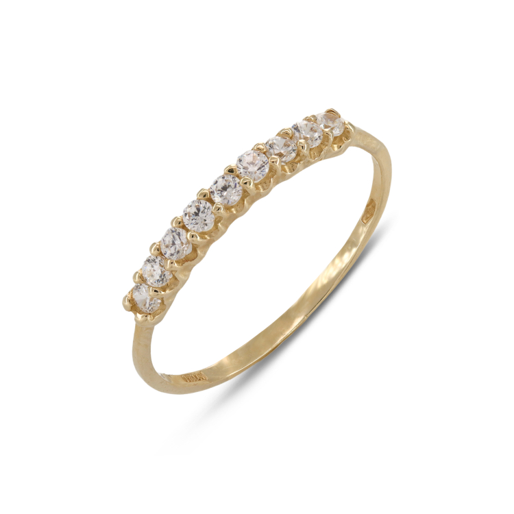 Δαχτυλίδι κατασκευασμένο από χρυσό 14 καρατίων, διακοσμημένο με 9 διάφανες πέτρες ζιργκόν.