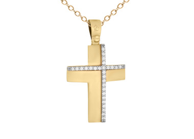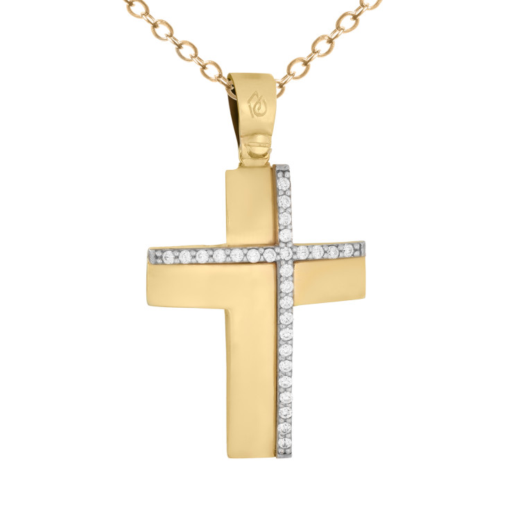 Σταυρός βάπτισης ανδρικός δίχρωμος με λεπτομέρεια σταυρού σε λευκό χρώμα και λούστρε ματ φινίρισμα