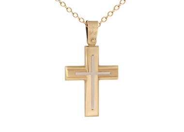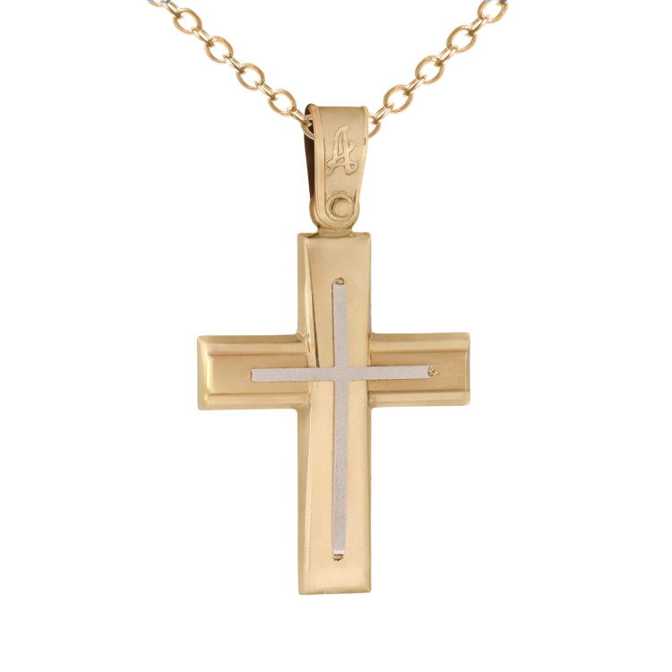 Σταυρός βάπτισης ανδρικός δίχρωμος με λεπτομέρεια σταυρού σε λευκό χρώμα και λούστρε ματ φινίρισμα