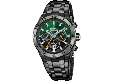 Ανδρικό ρολόι Festina F20531/2 με κάσα από ανοξείδωτο ατσάλι, πράσινη στεφάνη και τζάμι από ζαφείρι με μπρασελέ από ανοξείδωτο ατσάλι. Βιδωτή...