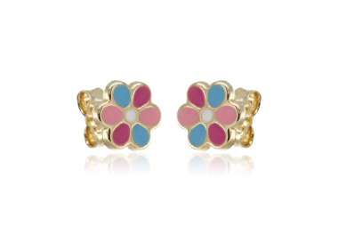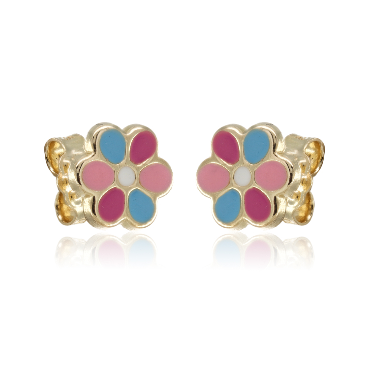 Σκουλαρίκι λουλούδι από χρυσό 9 καρατίων χρωματιστό σε όλη του την επιφάνεια.