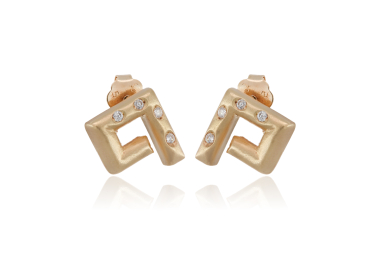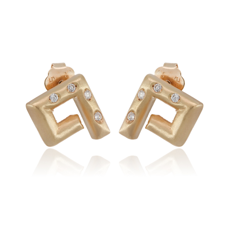 Γυναικεία σκουλαρίκια από χρυσό 14 καρατίων διακοσμημένα με διάφανα ζιργκόν , σε ματ φινίρισμα και κούμπωμα ασφαλείας.