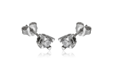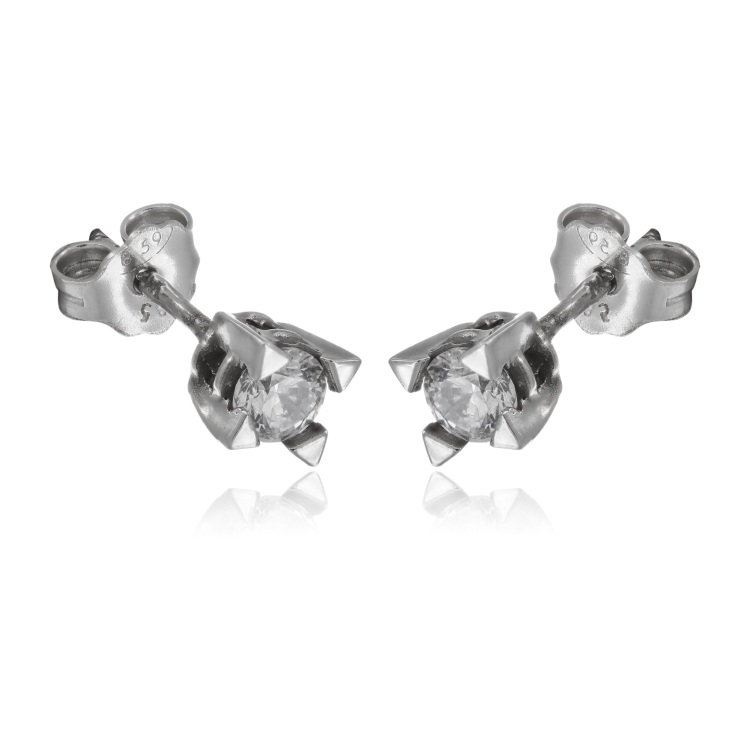 Μονόπετρα σκουλαρίκια από λευκό χρυσό 14 καρατίων δεμένα με διαφανές πέτρες ζιργκόν.