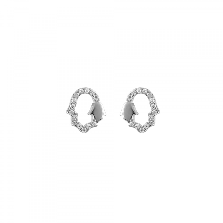Γυναικεία σκουλαρίκια από ασήμι 925 , δεμένο με ζιργκόν και σχέδιο με το χέρι της Φατιμά που είναι σύμβολο για καλή τύχη.