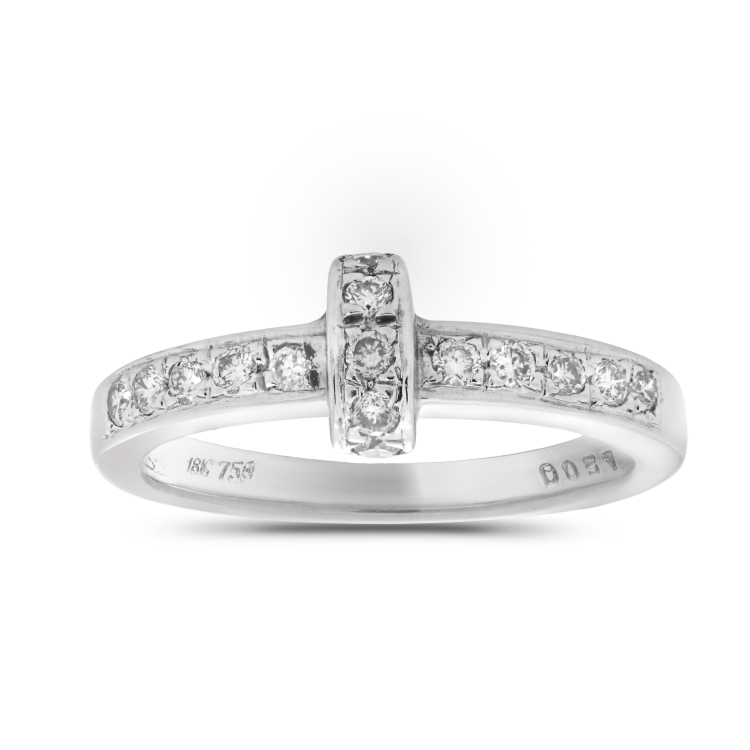 Ένα πανέμορφο δαχτυλίδι από λευκό χρυσό 18 καρατίων διακοσμημένο με λευκό brilliant.