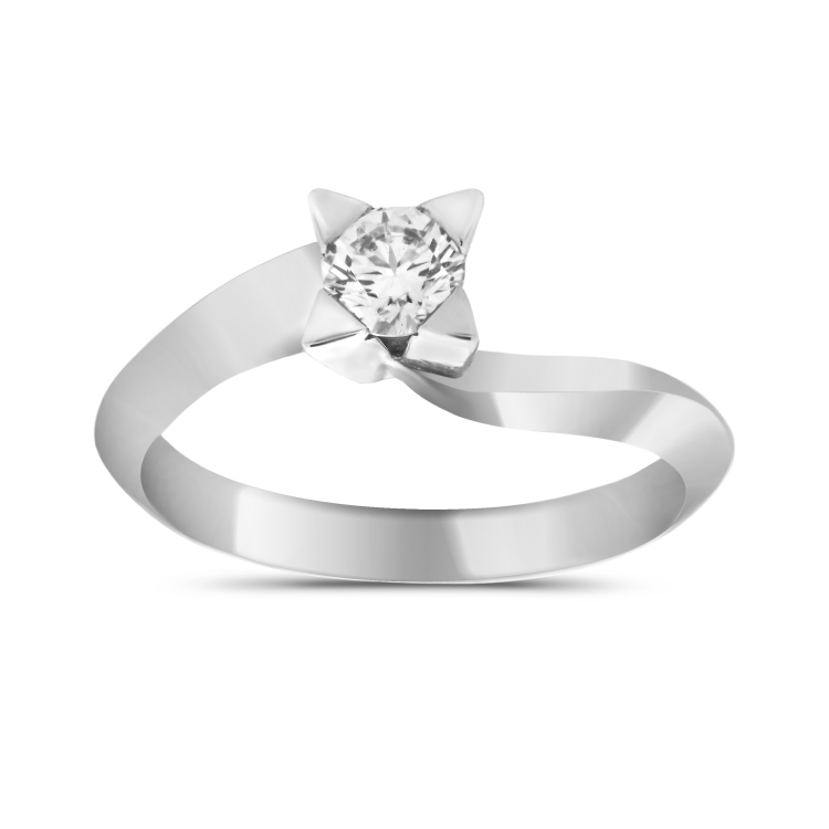 Μονόπετρο δαχτυλίδι από λευκό χρυσό 18 καρατίων , δεμένο με brilliant και σχέδιο φλόγας.