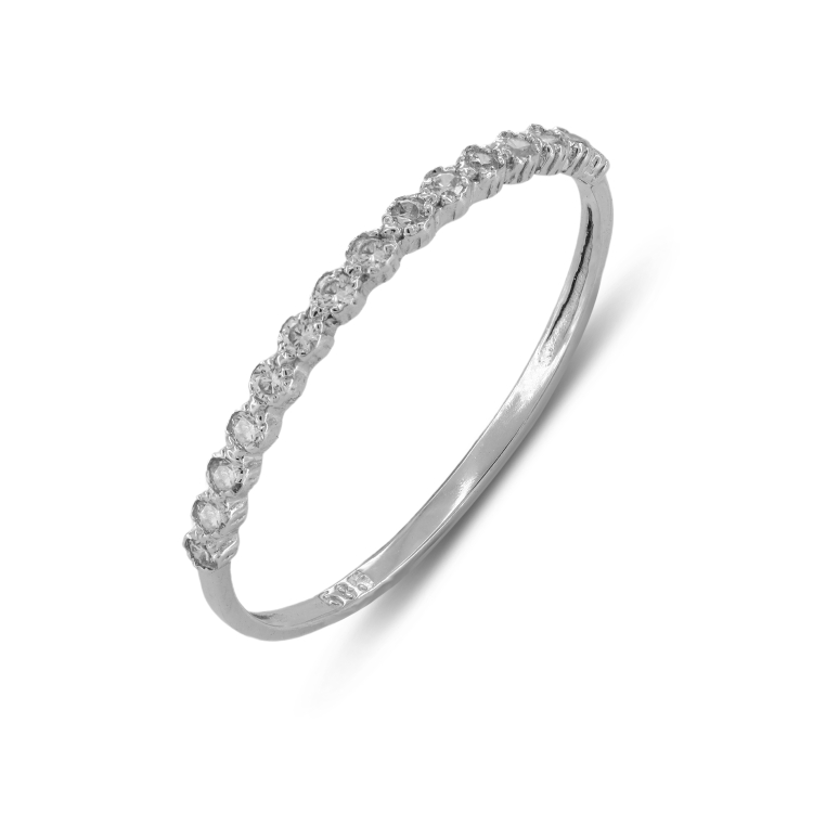 Δαχτυλίδι κατασκευασμένο από χρυσό 14 καρατίων, διακοσμημένο με 14 διάφανες πέτρες ζιργκόν.