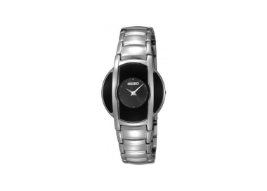 Γυναικείο ρολόι της εταιρείας Seiko με ατσάλινο μπρασελέ και μαύρο καντράν.